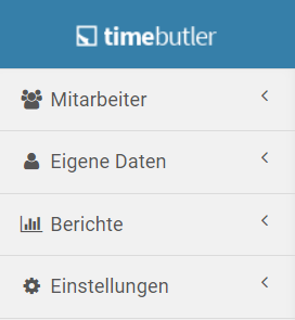 Über die linke Navigationsleiste haben Sie immer alle Timebutler Funktionen im Zugriff, unterteilt in vier Bereiche: