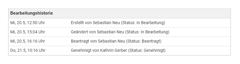 Um einen genehmigten Urlaubsantrag zu ändern ist es also erforderlich, den Urlaubsantrag zu löschen und einen neuen Urlaubsantrag einzugeben.