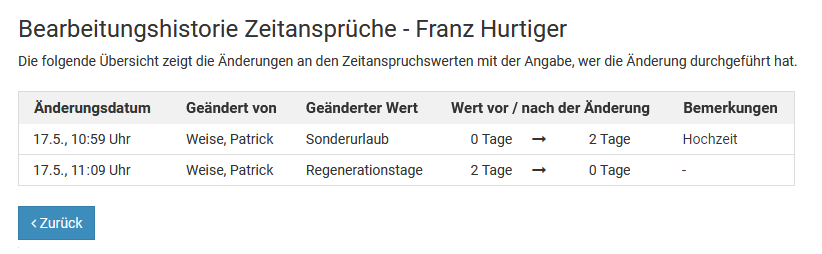 Genehmigte Urlaubsanträge können nachträglich nicht geändert werden, damit Anträge nicht nachträglich manipuliert werden können und aus Gründen der Revisionssicherheit.