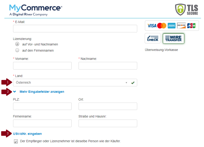Folgen Sie den Erläuterungen auf der Webseite, um die Bestellung abzuschließen.