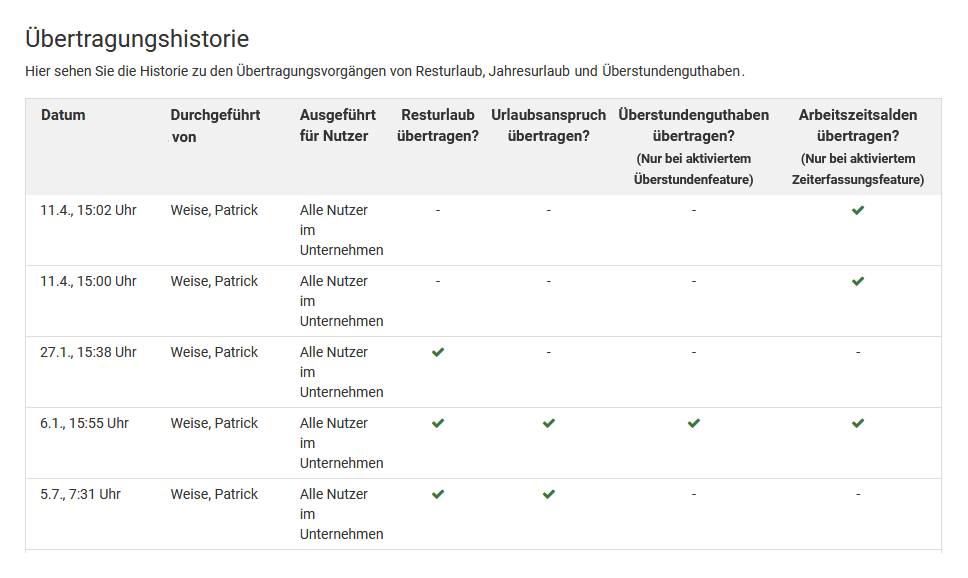 Abwesenheit löschen, Mitarbeiter-Nutzer