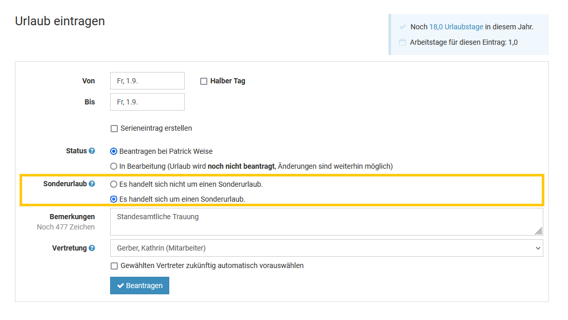 Urlaub genehmigt wird.